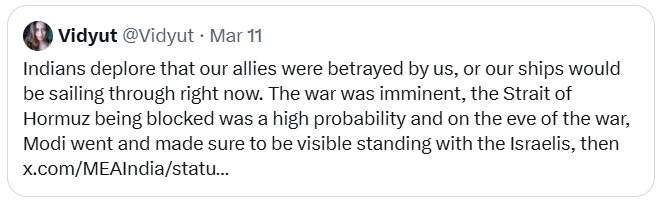 Whatever the outcome of #Iran's fight in the War for its Existence, #India will never be forgiven by Iran for its duplicitous role in support of the #ZionistState(ZS). It will no doubt rant on about unbreakable 'civilisation links' between the two, but India has effectively lost Iran for times to come.